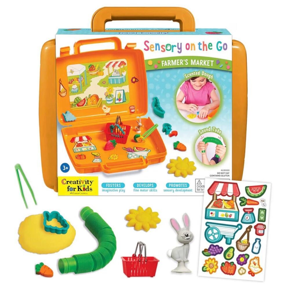 This Creativity for Kids Sensory On The Go Farmers Market kit is a fun hands on activity designed to encourage sensory exploration and early learning for toddlers and preschoolers. The portable sensory play set lets kids explore textures, colors, and imaginative play while pretending to shop and organize items from a farmers market. It is designed to support early development skills such as fine motor coordination, creativity, and sensory learning. The compact design makes it a great activity to bring along during travel, playdates, or quiet time at home. Be sure to clip the available coupon to save even more on this educational toy.