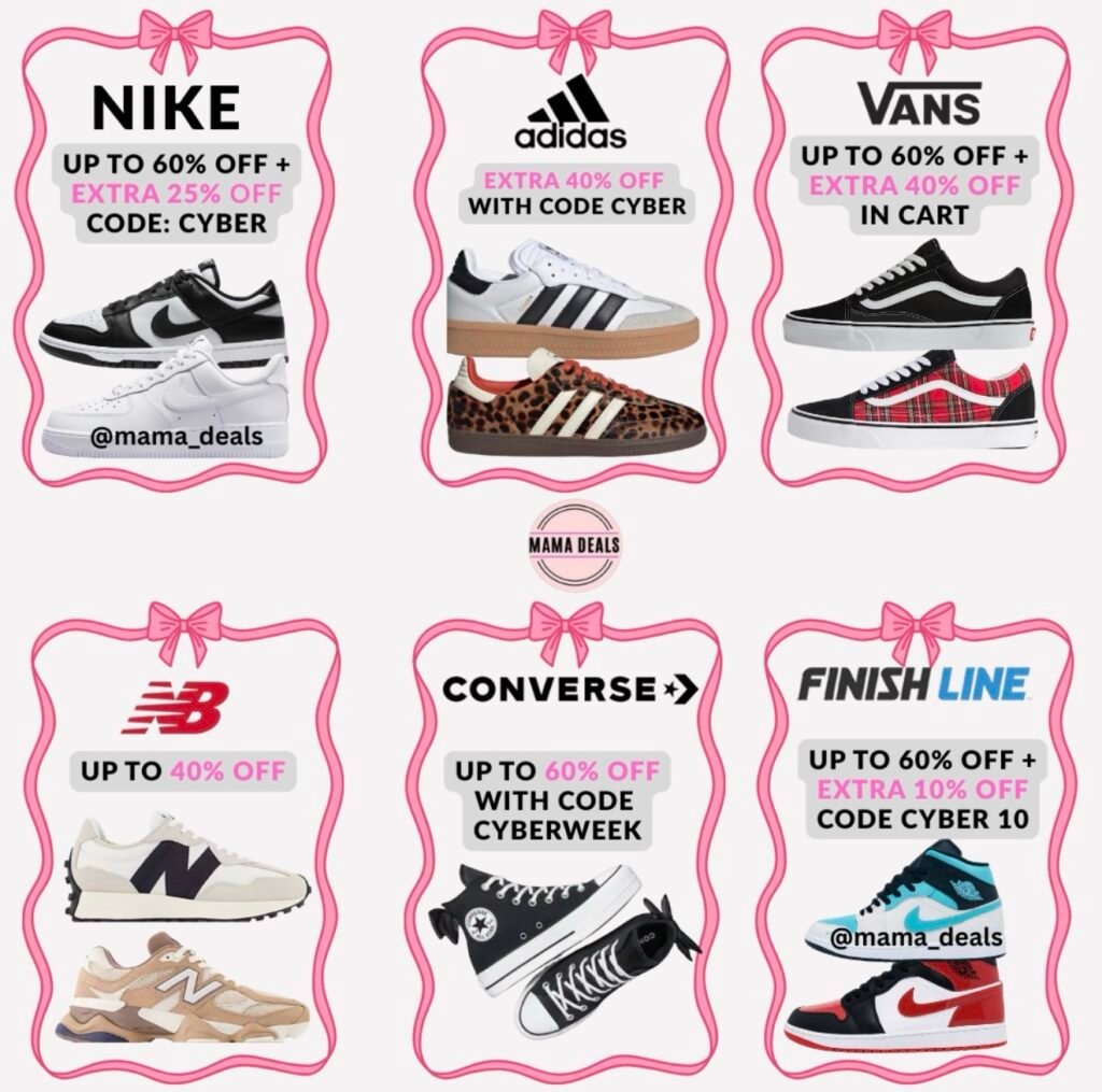 If you’re shopping for the best sneaker deals of Cyber Monday 2025, this is the time to save BIG on top athletic brands! I’ve rounded up all the hottest offers from Nike, adidas, Vans, New Balance, Converse, Finish Line, and Crocs — including stacking promo codes where available.