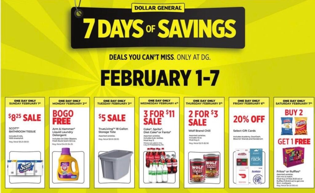 Dollar General is kicking off February with one of its biggest weekly promotions — 7 Days of Savings, running February 1 through February 7.