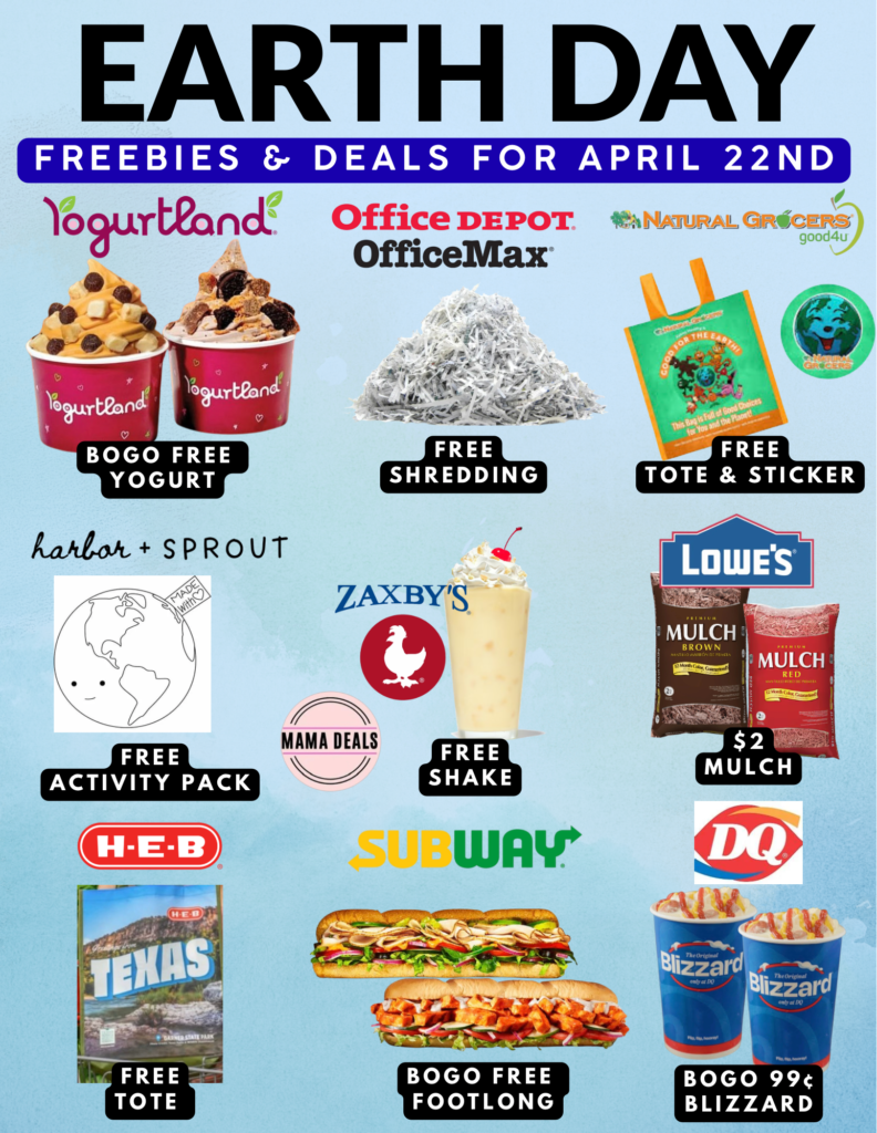 Celebrate Earth Day with the best freebies, food deals, and eco-friendly giveaways happening April 22nd. These offers are available for a limited time, so be sure to grab them early!