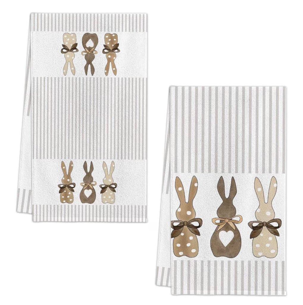 Bring a festive spring vibe to your kitchen with this Happy Easter Kitchen Towels set featuring a cute stripe and bunny rabbit design. These decorative towels are perfect for celebrating Easter while keeping your kitchen clean and organized. Made with soft and absorbent fabric, they work well for drying dishes, wiping counters, or displaying as seasonal kitchen décor. The large 18×26 inch size provides plenty of coverage for everyday kitchen tasks while adding a cheerful holiday touch to your home.