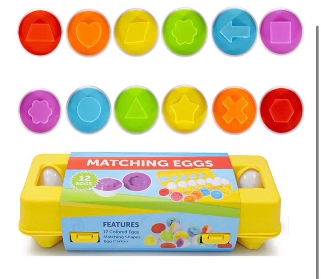 • Fun matching egg design helps kids learn colors and shapes