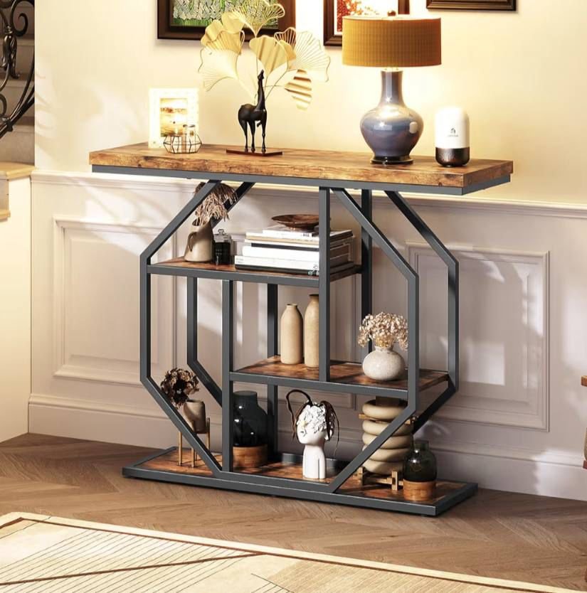 Enhance your living space with this stylish and functional entryway table. Currently priced at $59.99 on Amazon, this industrial console sofa table combines a rustic brown finish with practical storage options, making it ideal for your living room, hallway, entry, or foyer. Its narrow design allows it to fit comfortably in tight spaces while still providing surface space for decorative items, keys, mail, or other essentials. The combination of durability, style, and utility makes this accent table a versatile addition to any home.