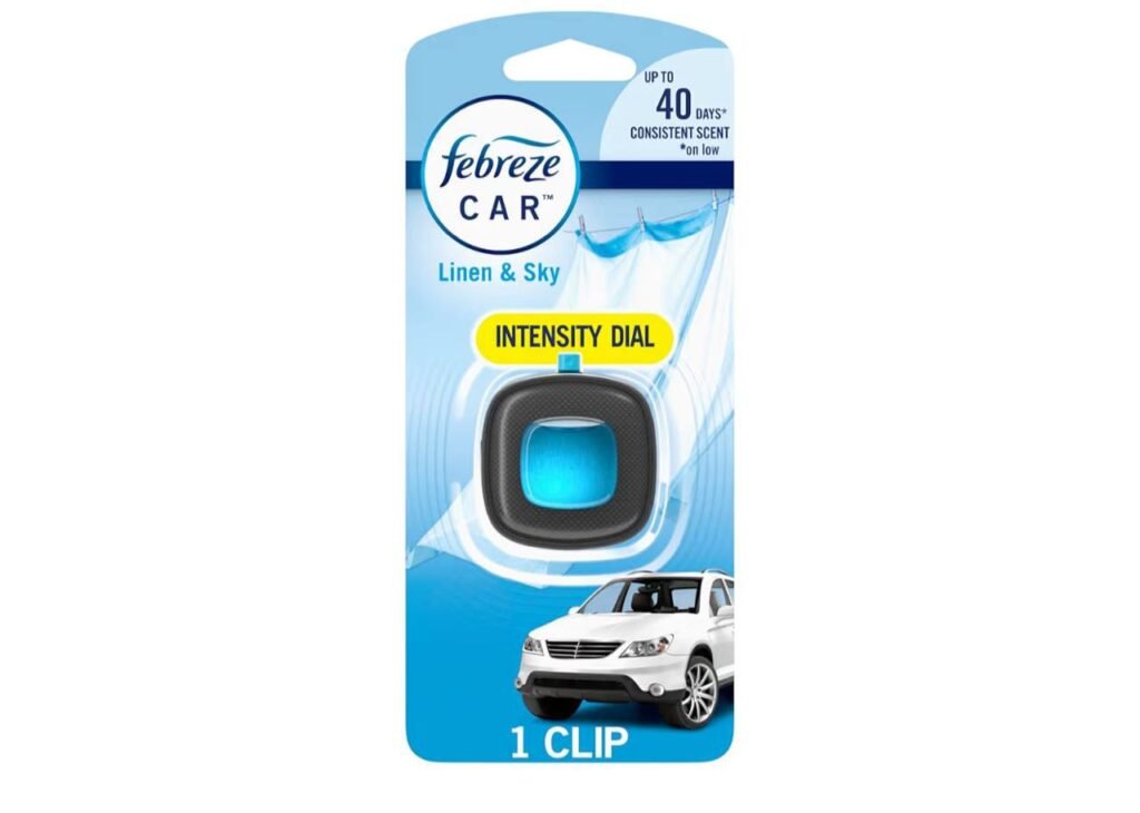 • Febreze car air freshener vent clip with Linen and Sky fragrance