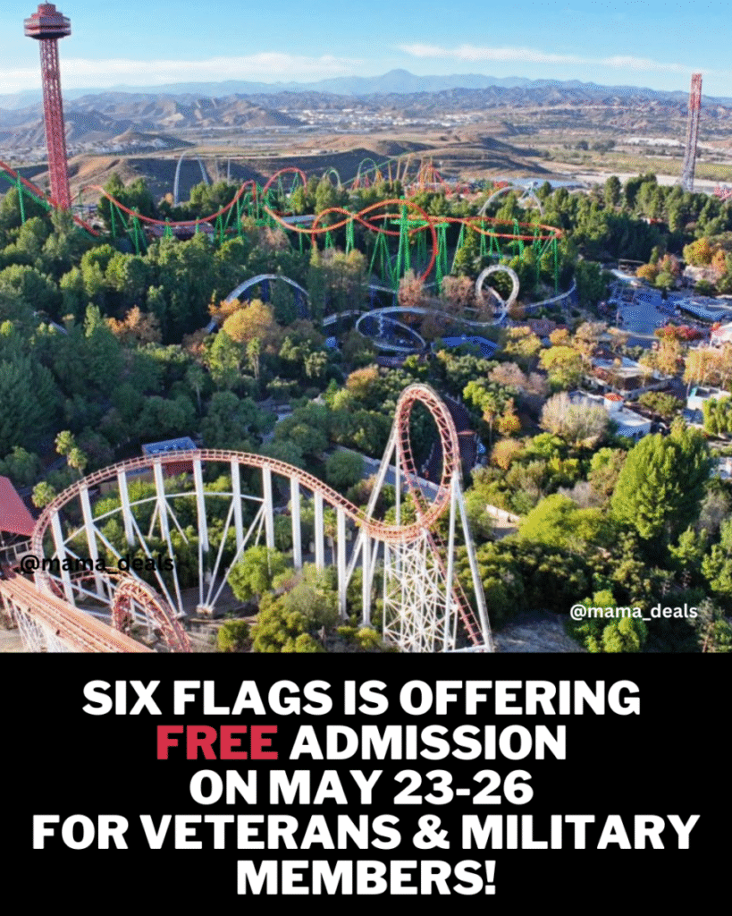Free admission for U.S. military members and veterans is available at all Six Flags parks, excluding Knott’s Berry Farm, Knott’s Soak City, and Cedar Point Shores. Discounted admission will be available during Memorial Day weekend at these locations