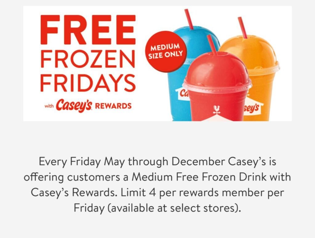 - Free Frozen Drink for Casey’s Rewards Members