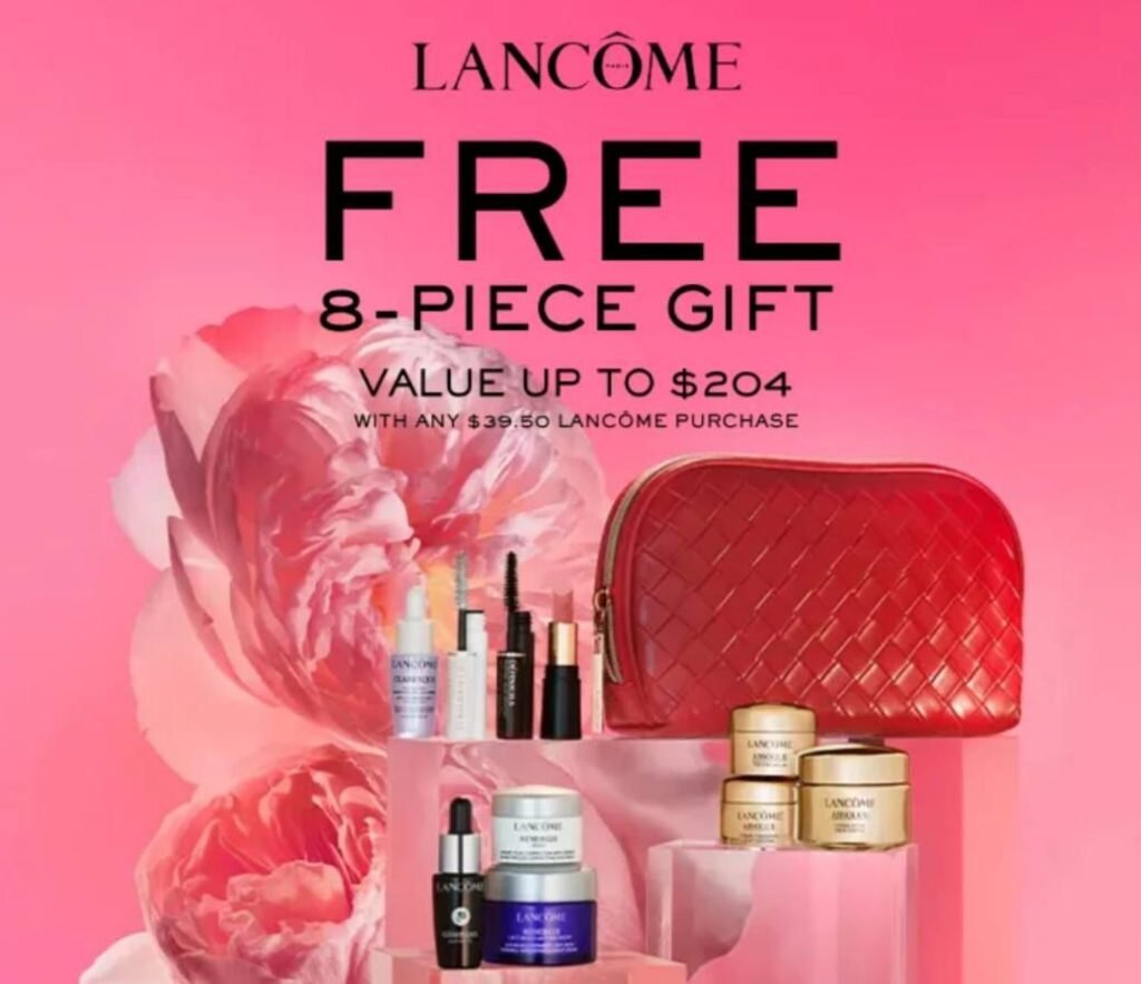 - Free Lancôme 8-piece gift set valued at $204 with qualifying purchase