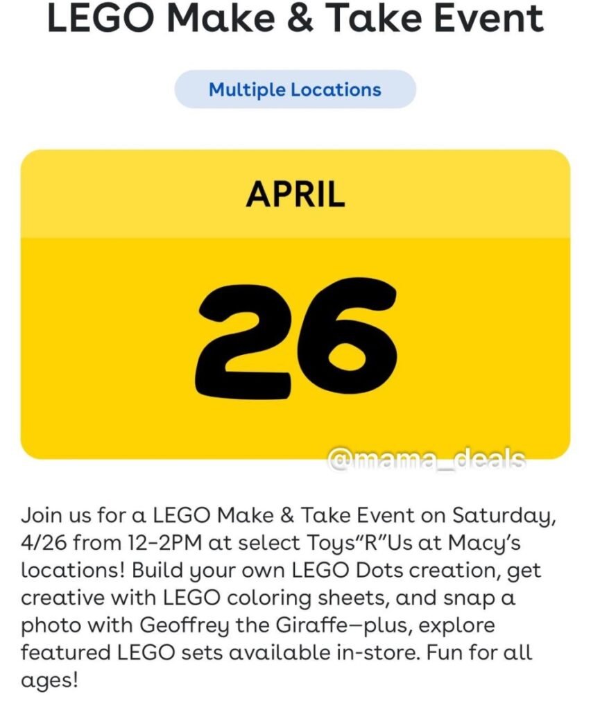 Free LEGO Make & Take Event this Saturday from 12-2 pm