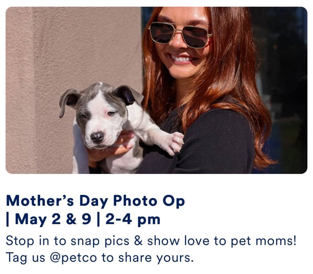 Petco is hosting a FREE in-store Mother’s Day Photo Op event where you can snap adorable pics with your pets and celebrate all the amazing pet moms!