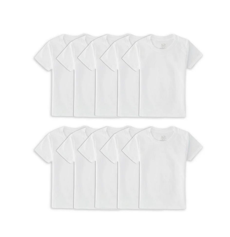 • Includes 10 white crew-neck undershirts for toddler boys