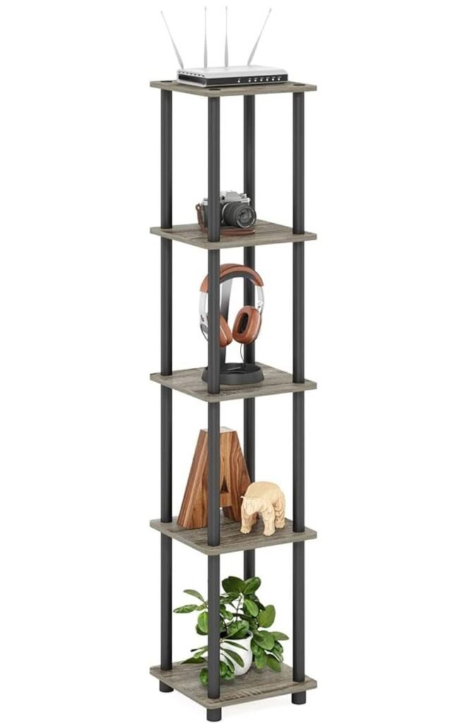 This FURINNO Turn?N?Tube 5?Tier Corner Square Rack Display Shelf is available at Amazon for about $23.xx, marked down from around $54.xx, making it an affordable and stylish storage solution for your home. The versatile corner design fits neatly into unused spaces, while the five tier shelves provide ample room to showcase décor, store books, organize plants, or display collectibles. Its modern French Oak Grey and Black finish blends well with a variety of décor styles.