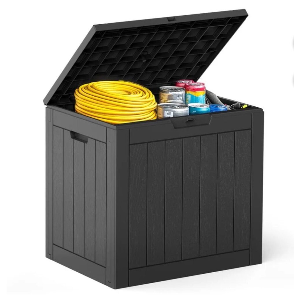 Organize your patio, garden, or indoor space with the Gianna 31 Gallon Resin Deck Box, now priced at just $14.99 at Walmart. This versatile storage solution is designed to keep your outdoor essentials neatly stored and protected from the elements. The Wisteria Black finish offers a sleek and modern look that blends easily with most patio furniture and décor styles.