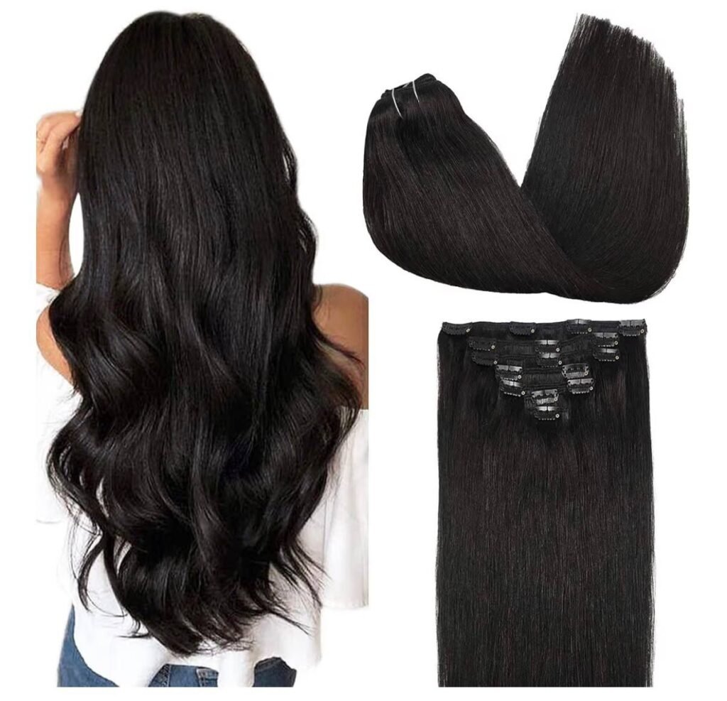 Refresh your look instantly with these GOO GOO clip in hair extensions made from real Remy human hair. Now available for $64.99, regularly $108.99, this set delivers natural length, fullness, and volume without the commitment of permanent extensions. The 1B natural black shade blends beautifully with dark hair tones for a seamless finish.