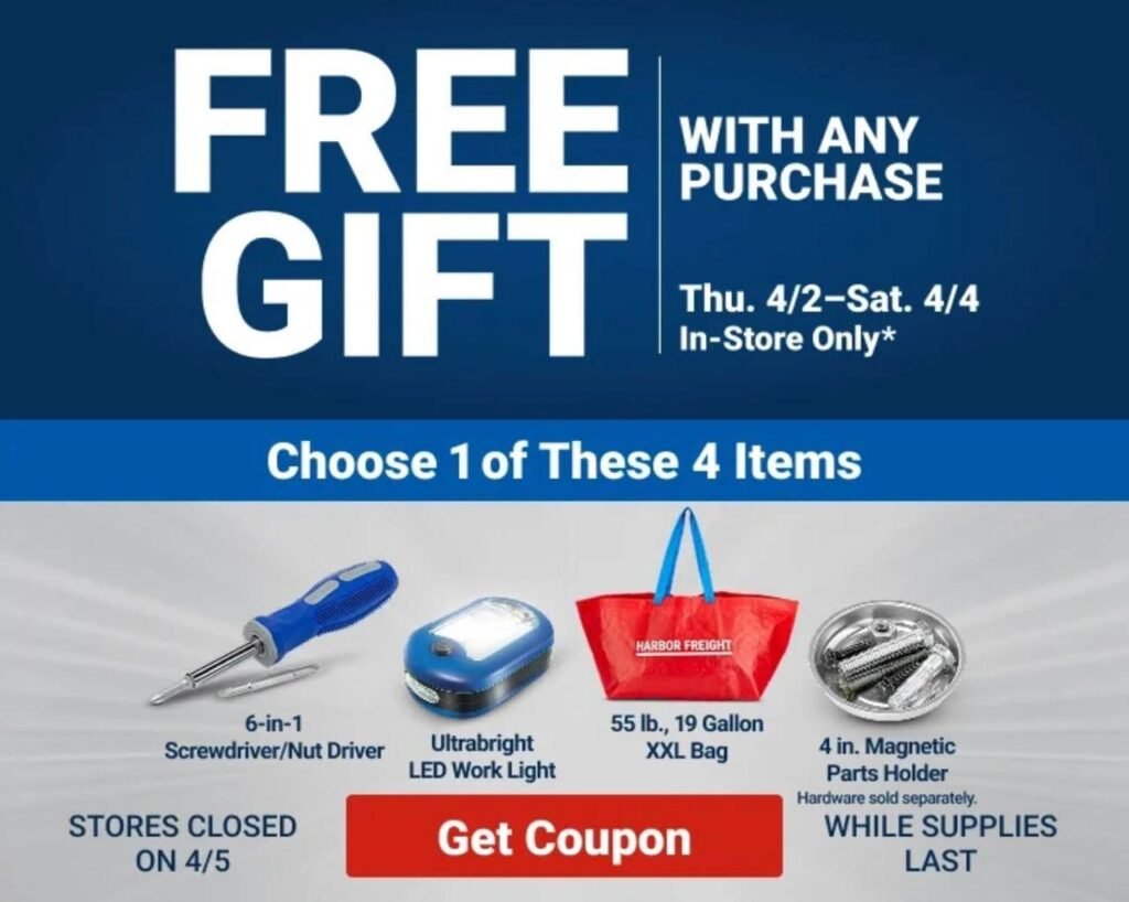 Free Gift with Any Purchase at Harbor Freight – In Store Only!