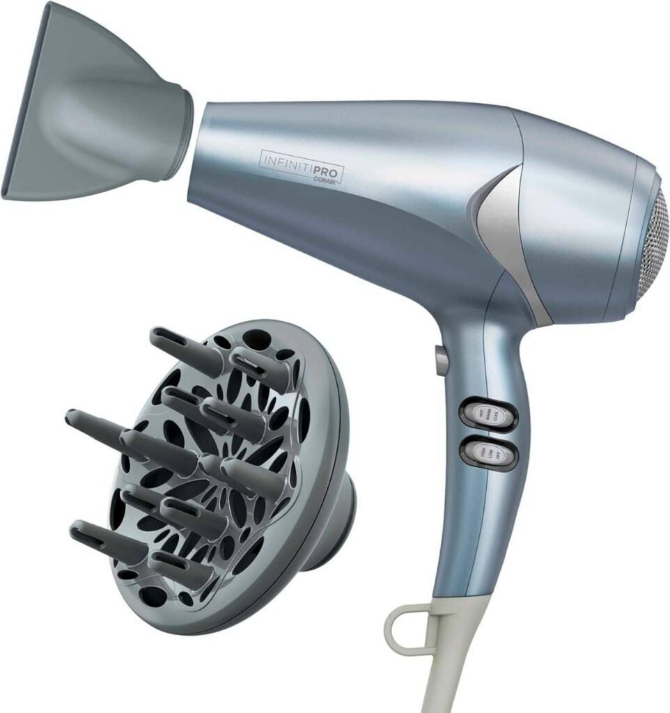 • Includes diffuser for curls and concentrator for sleek styles