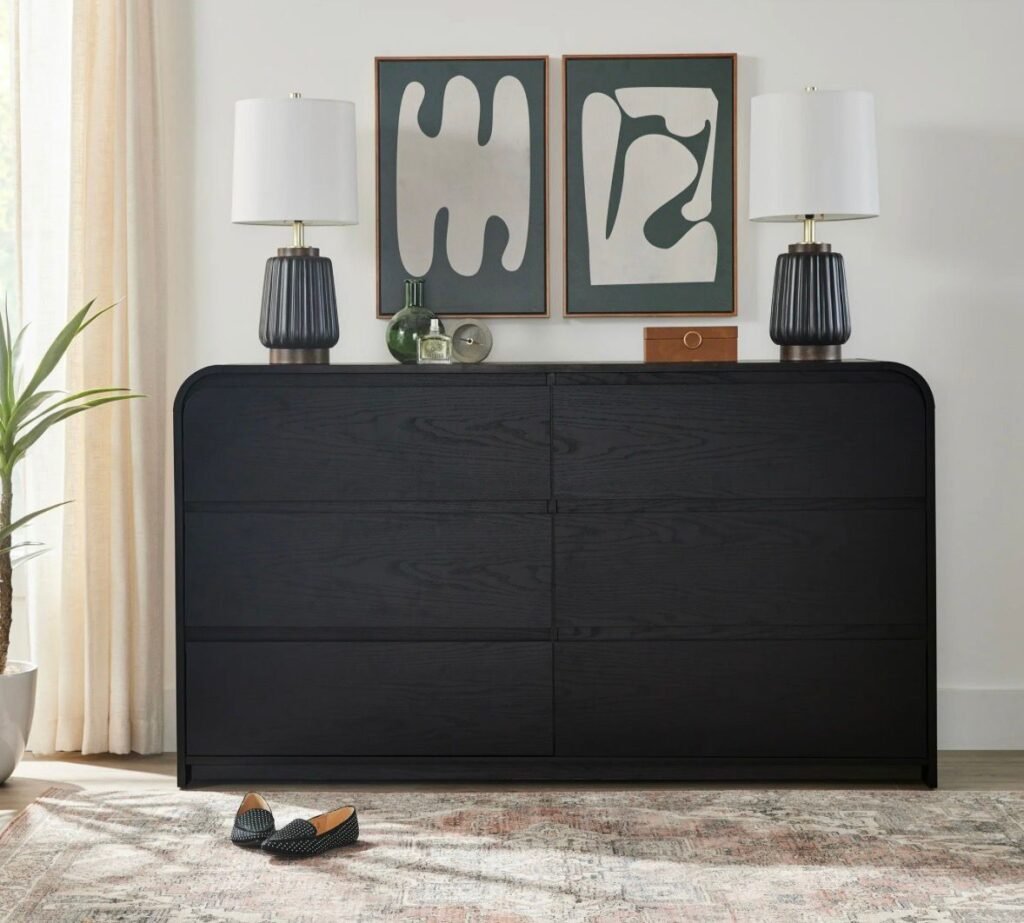 Upgrade your bedroom storage with the Better Homes & Gardens Juliet 6 Drawer Dresser. Now available at Walmart for just $179, down from $289, this stylish and functional dresser offers ample storage space and a sleek black finish that complements any décor. Perfect for organizing clothes, linens, or accessories while adding a modern touch to your room.