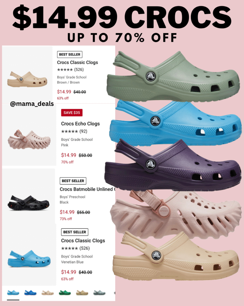Looking for a great deal on Crocs for your little ones? For a limited time, Kids Foot Locker is offering select Crocs in kids’ sizes for only $14.99! This is the perfect time to grab a pair for school, sports, or everyday wear.