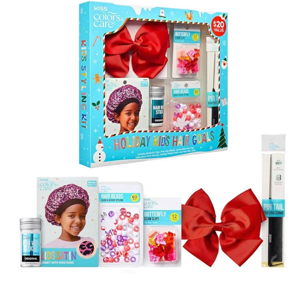 Make styling fun and easy with this KISS Colors and Care Holiday Hair Goals Kids Hair Styling Gift Set, now available for just $7.xx on Amazon. Packed with colorful accessories and essentials, this 12 piece set is perfect for kids who love to experiment with hairstyles while keeping their hair neat and stylish.
