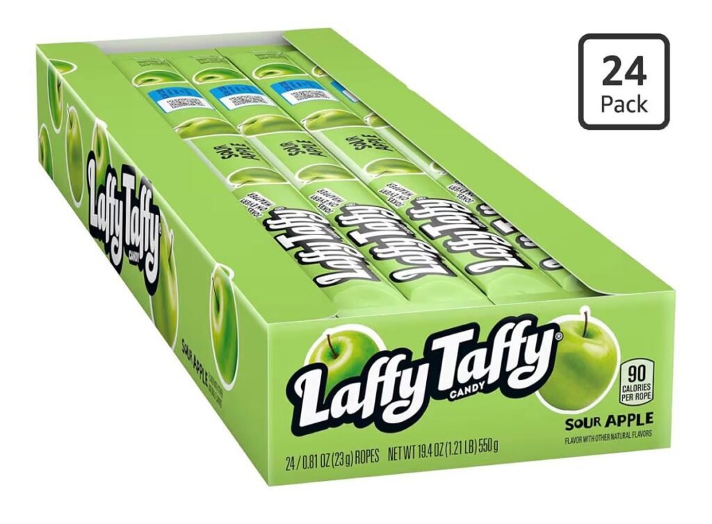 • Includes 24 individually wrapped sour apple flavored taffy ropes