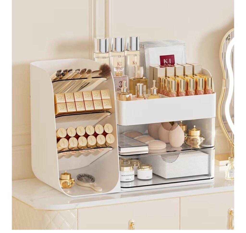 Organize your beauty space for less with this Large Makeup Organizer with Drawers, now just $12.xx at Amazon. Designed to keep your vanity, bathroom counter, or bedroom desk neat and clutter free, this spacious organizer offers room for skincare, brushes, eyeshadow palettes, and lipsticks. The clean white design blends easily with most décor styles while maximizing storage space. It is a practical and affordable solution for keeping everyday beauty essentials within easy reach.