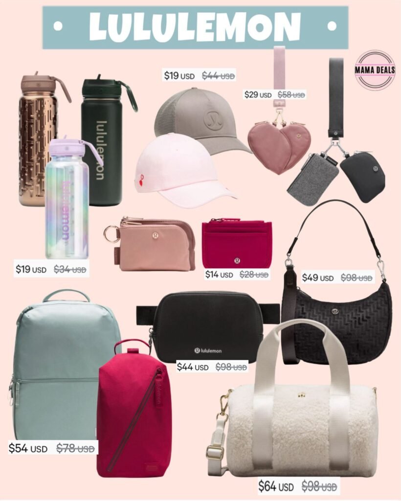 Browse the sale to find discounted bags, water bottles, headbands, socks, and more from Lululemon. You can also explore the full sale for additional apparel and performance pieces designed to elevate your fitness and everyday wardrobe.