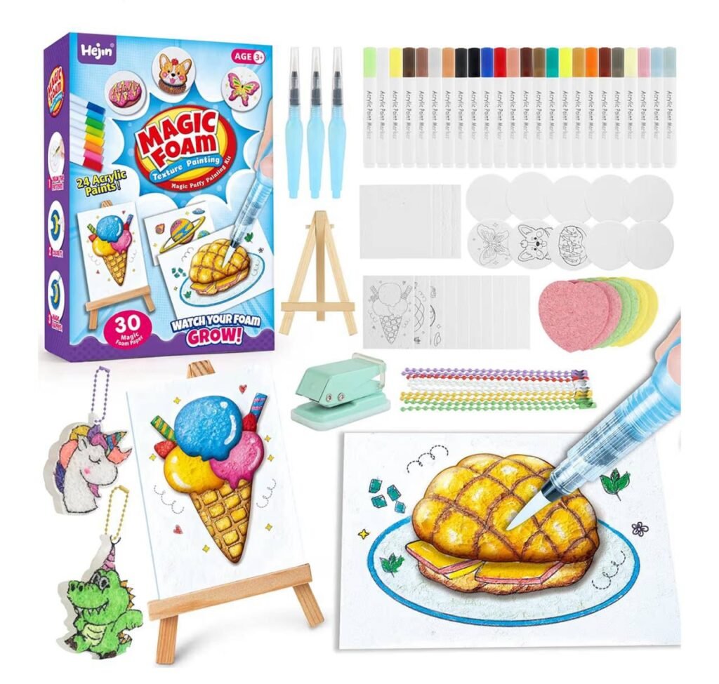 • Includes 30 foam texture papers and 24 acrylic paint markers in vibrant colors