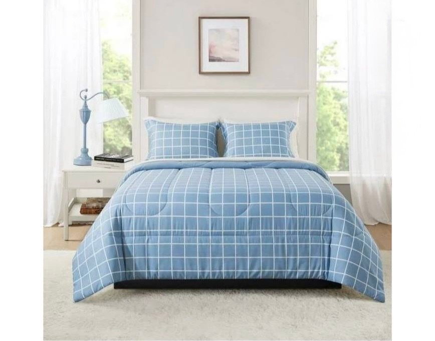 Mainstays 7 Piece Reversible Bed in a Bag Comforter Set with Sheets, Blue Check