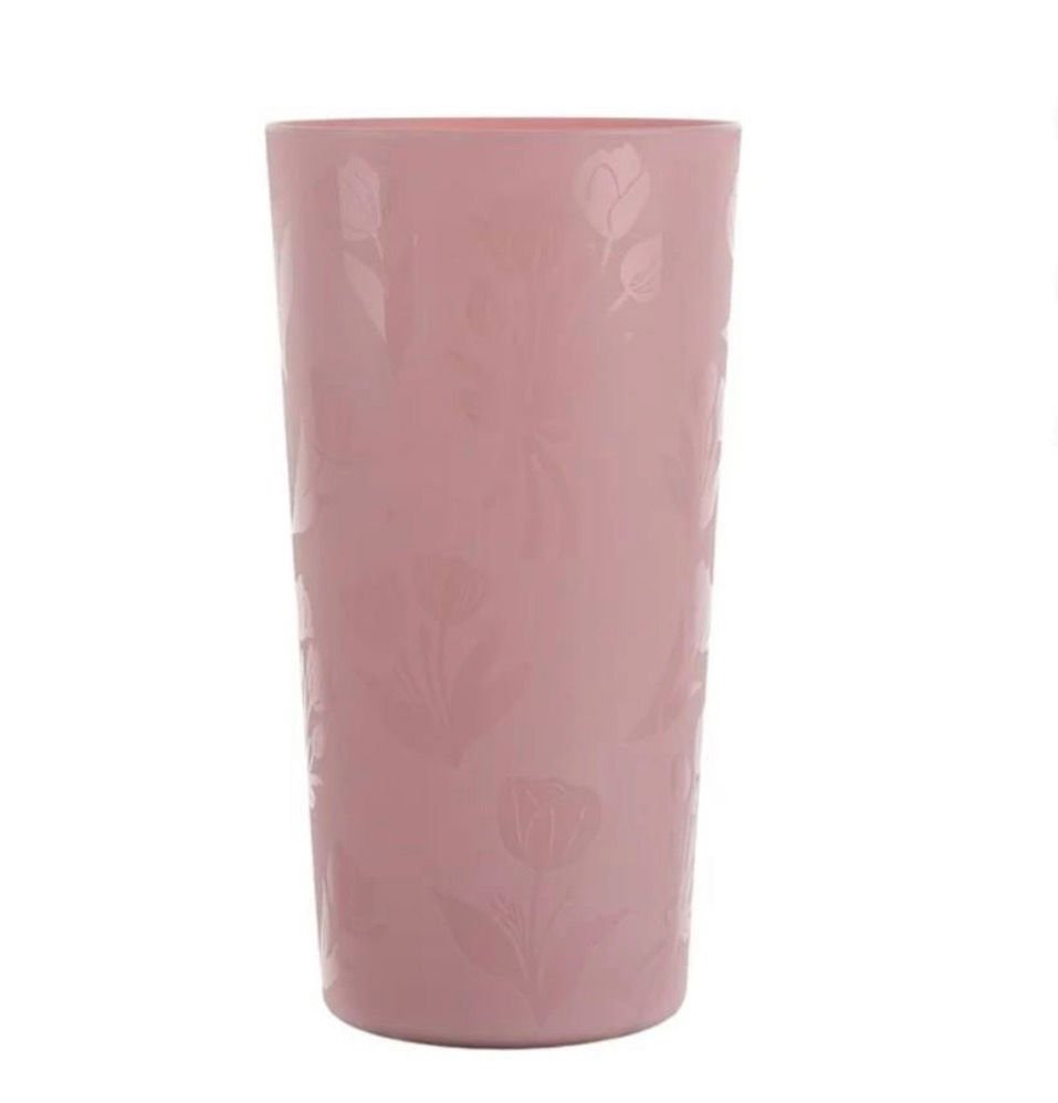 • Features a pink etched flower design for a stylish and playful table setting