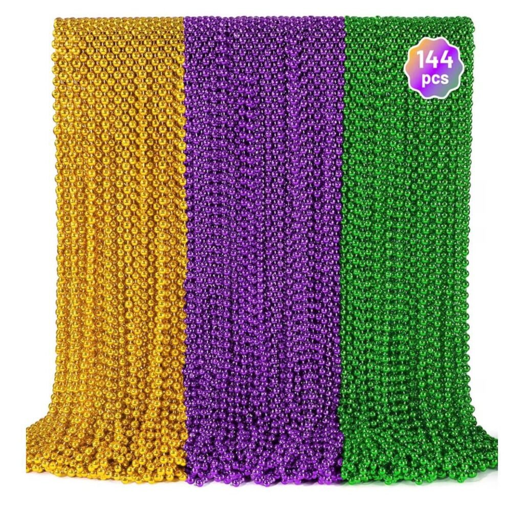 Score a festive deal on this 144-piece Mardi Gras beads necklace set, now just $12.99 at Amazon. Featuring vibrant gold, green, and purple metallic beads, this bulk pack is perfect for parties, parades, and celebrations without breaking the bank.