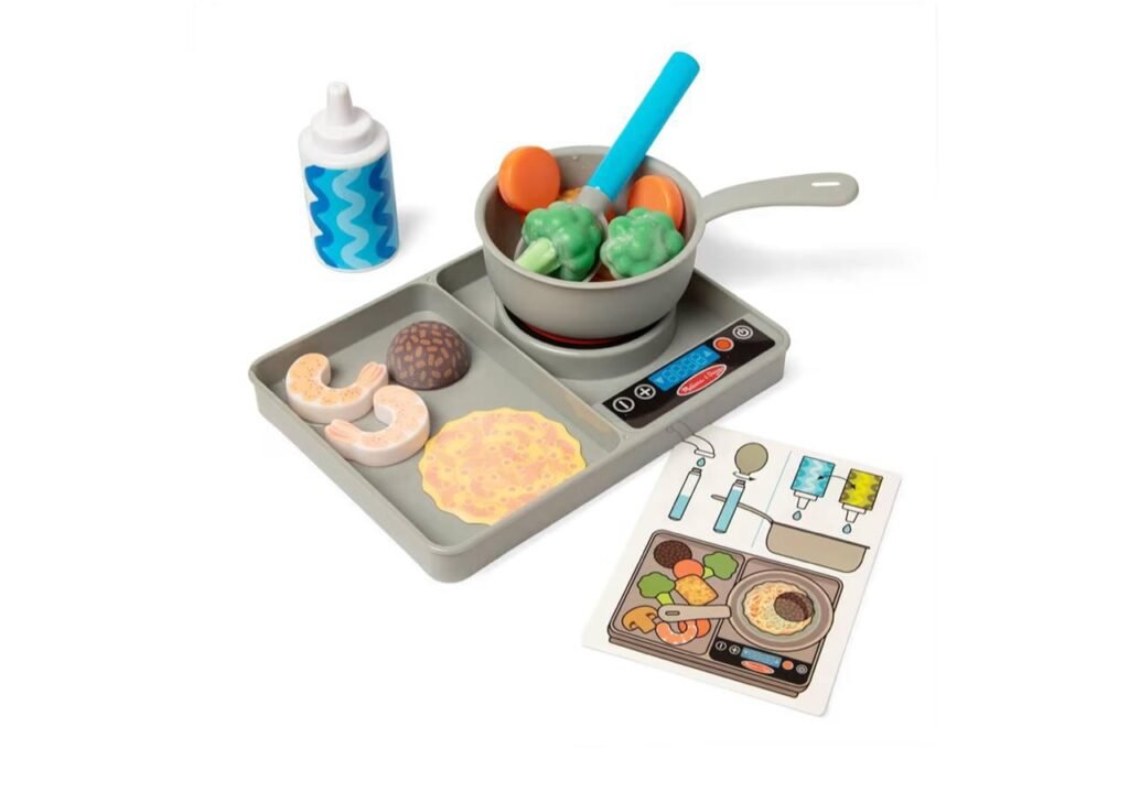 • Interactive stovetop play set designed for imaginative cooking and pretend play