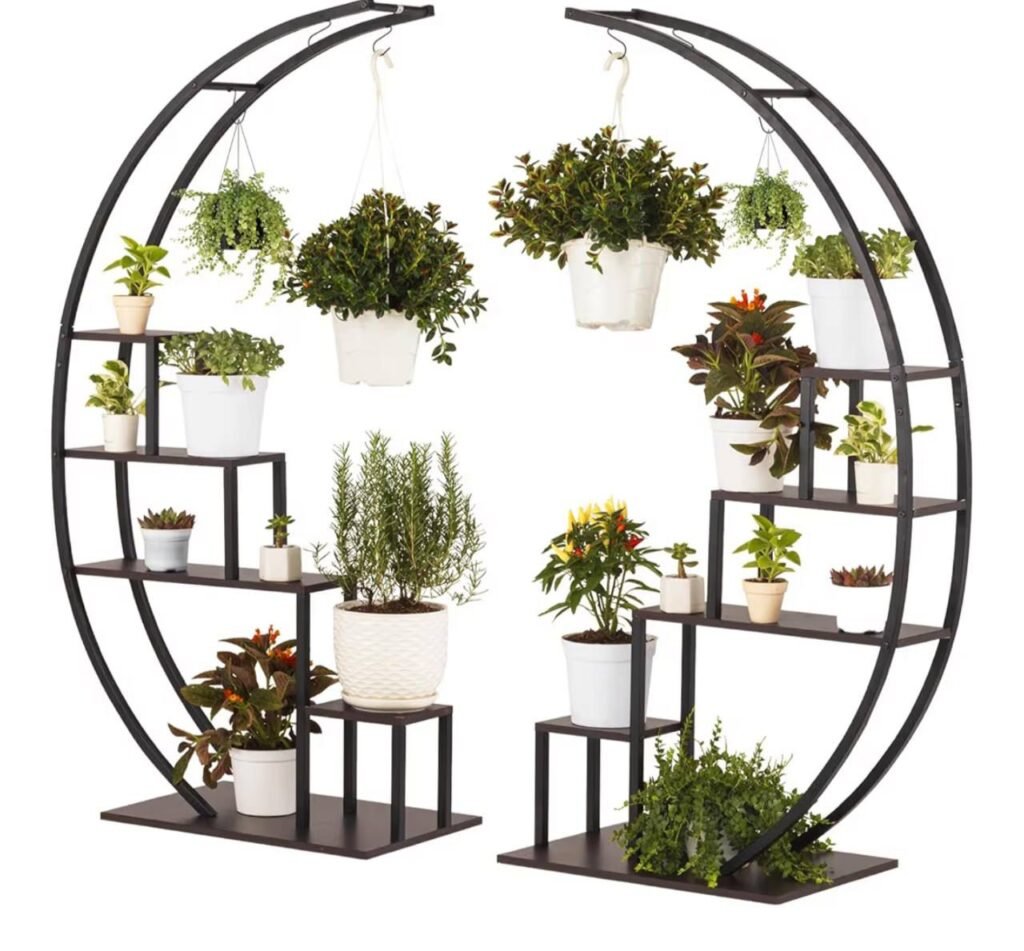 Showcase your favorite plants in style with this Metal Half Moon Plant Stand, now available for $38.xx at Amazon. This upgraded 2-piece set features multiple shelves and a sleek dark brown finish, making it ideal for decorating living rooms, balconies, bedrooms, or any indoor space.