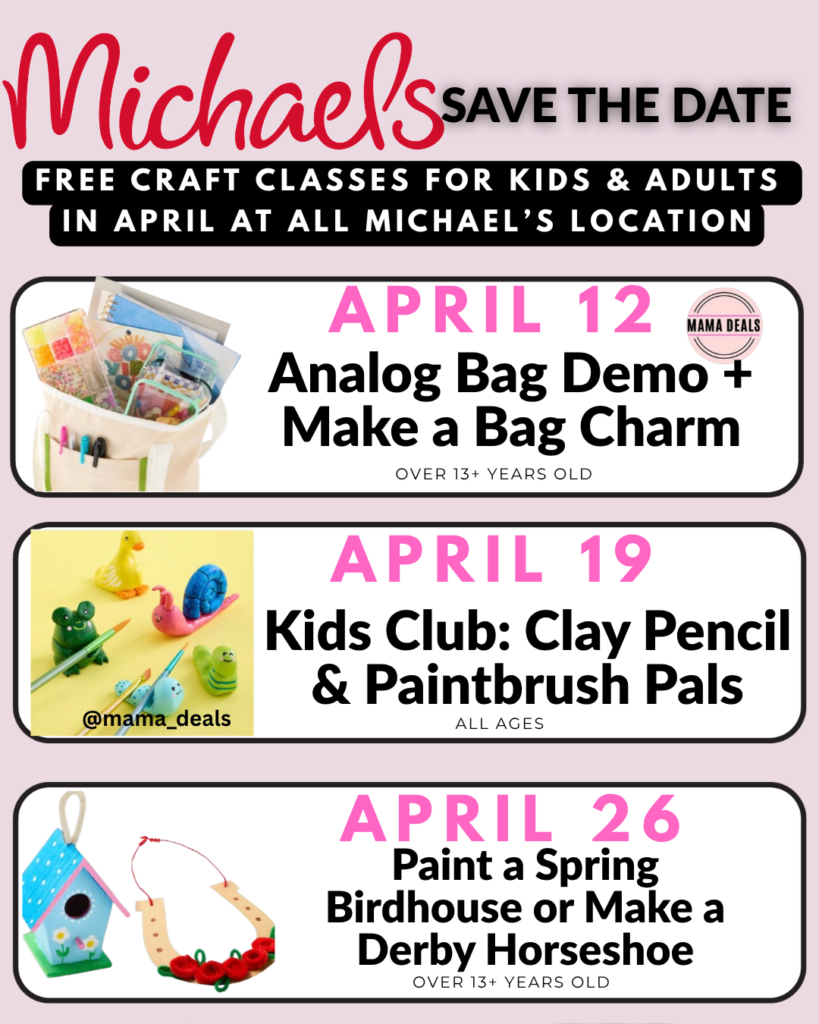 Michaels is offering FREE craft classes for kids and adults at participating locations all month long!