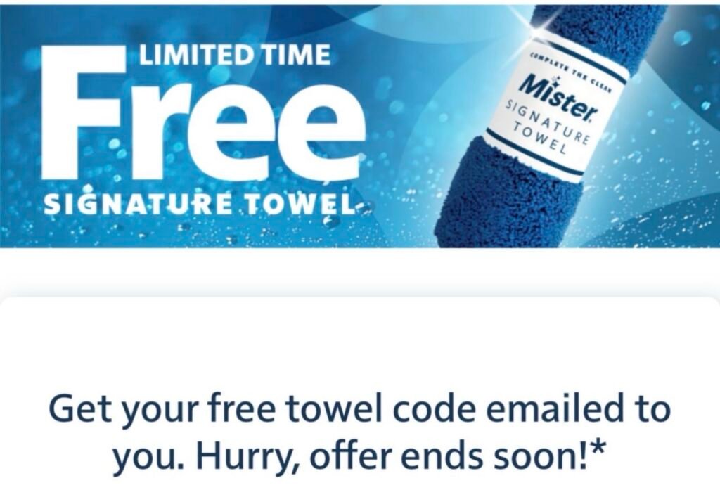 Mister Car Wash is offering a complimentary towel to customers who stop by select locations. All you have to do is mention the free towel promotion or show the official offer link, and you’ll leave with your car sparkling clean and a free towel in hand.