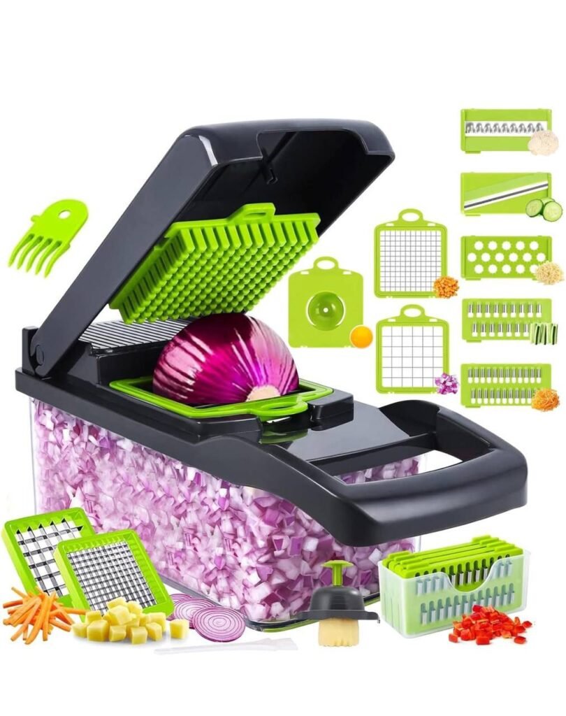 • Multifunctional 15-in-1 vegetable chopper that handles slicing, dicing, and more