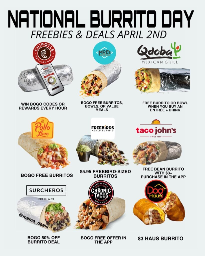 National Burrito Day is one of the biggest food freebie days of the year, with multiple restaurants offering: