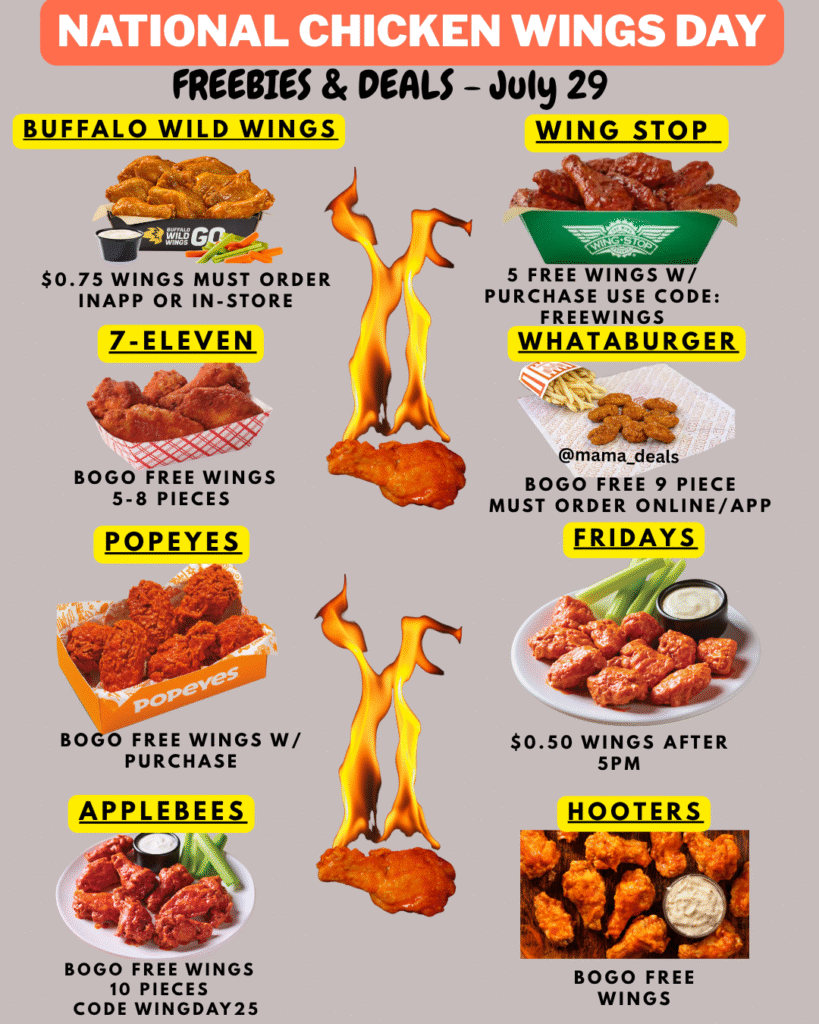 Get ready to celebrate National Chicken Wings Day on July 29, 2025, with these amazing deals from your favorite restaurants!