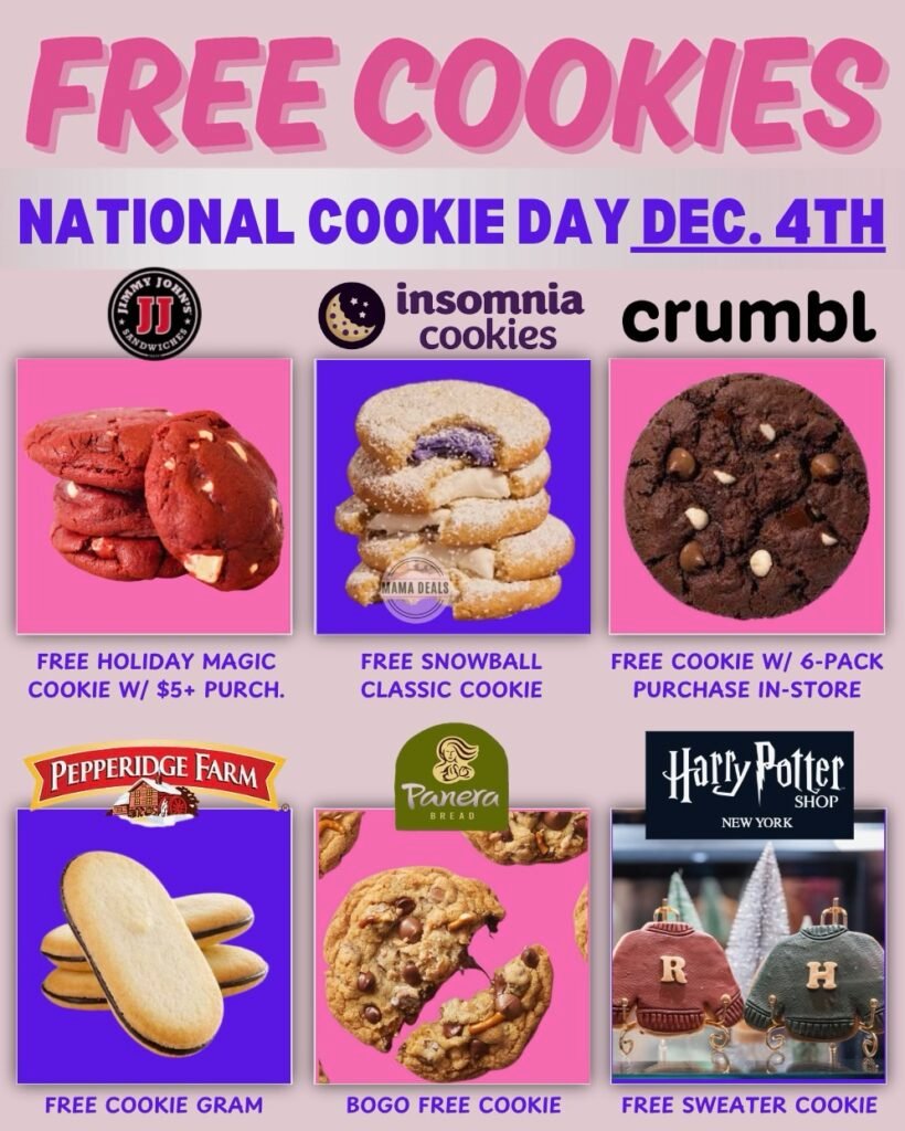 National Cookie Day is happening on December 4th, and so many brands are celebrating with free cookies, BOGO deals, and exclusive promotions! This is the full master list including every National Cookie Day freebie, code, and deal from all major retailers and bakeries — even offers not shown in the graphics circulating online.