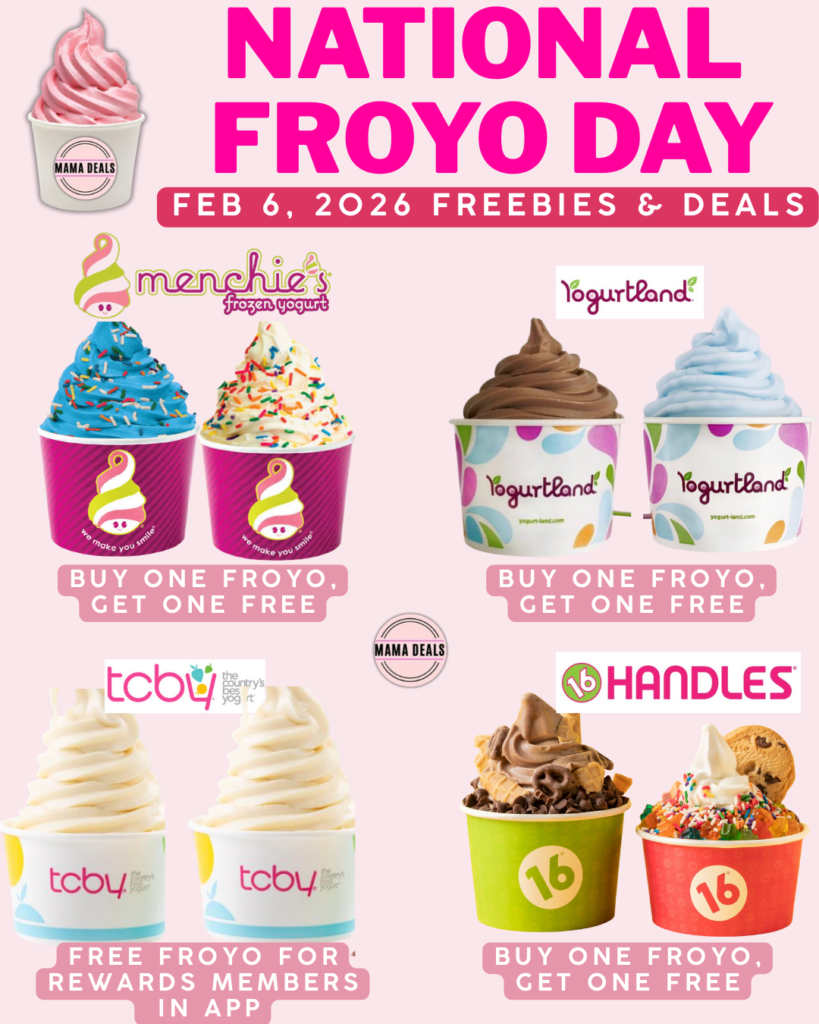 National Frozen Yogurt Day is happening on February 6, 2026, and several popular froyo chains are celebrating with buy one, get one free deals and free frozen yogurt for rewards members. If you love frozen yogurt, this is one food holiday you don’t want to miss.