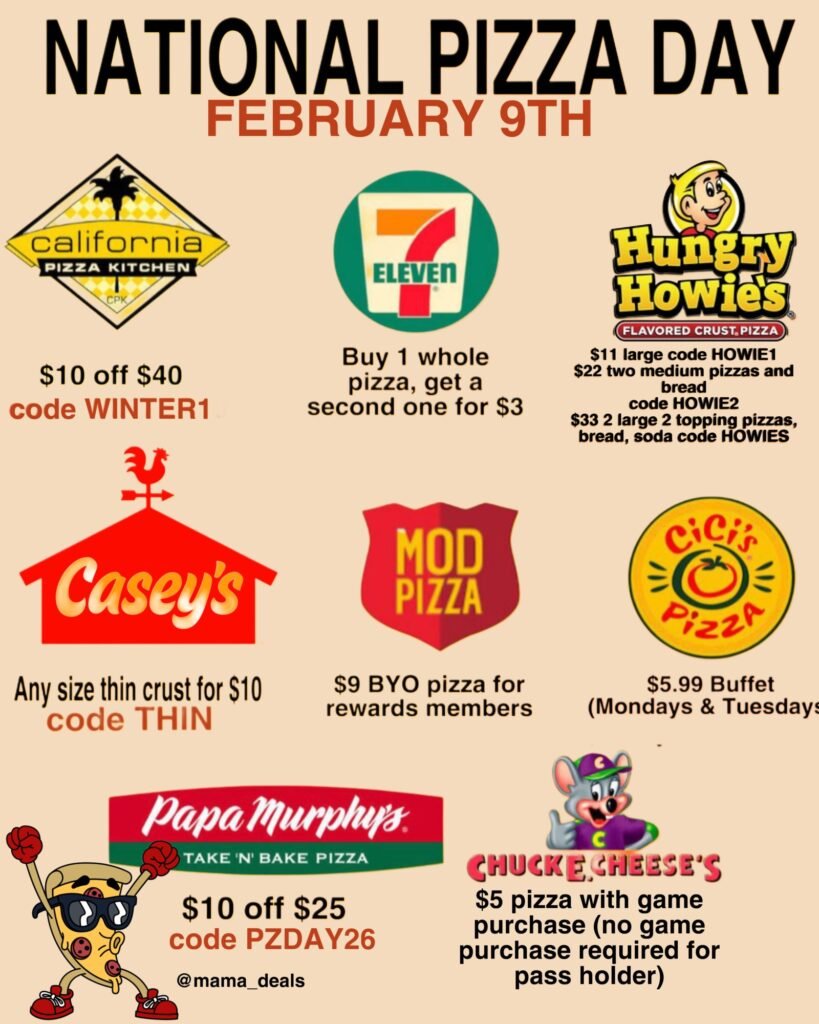 National Pizza Day is celebrated every year on February 9, and pizza lovers can score great deals from popular national pizza chains. From buy-one-get-one offers to discounted large pizzas, these National Pizza Day pizza deals help families save on takeout, delivery, and dine-in. Below is a full list of the best pizza deals available now, plus a few additional offers you may not want to miss.