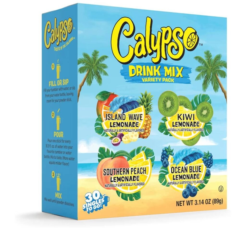 - 30-count variety pack of Calypso Singles To Go! drink mix