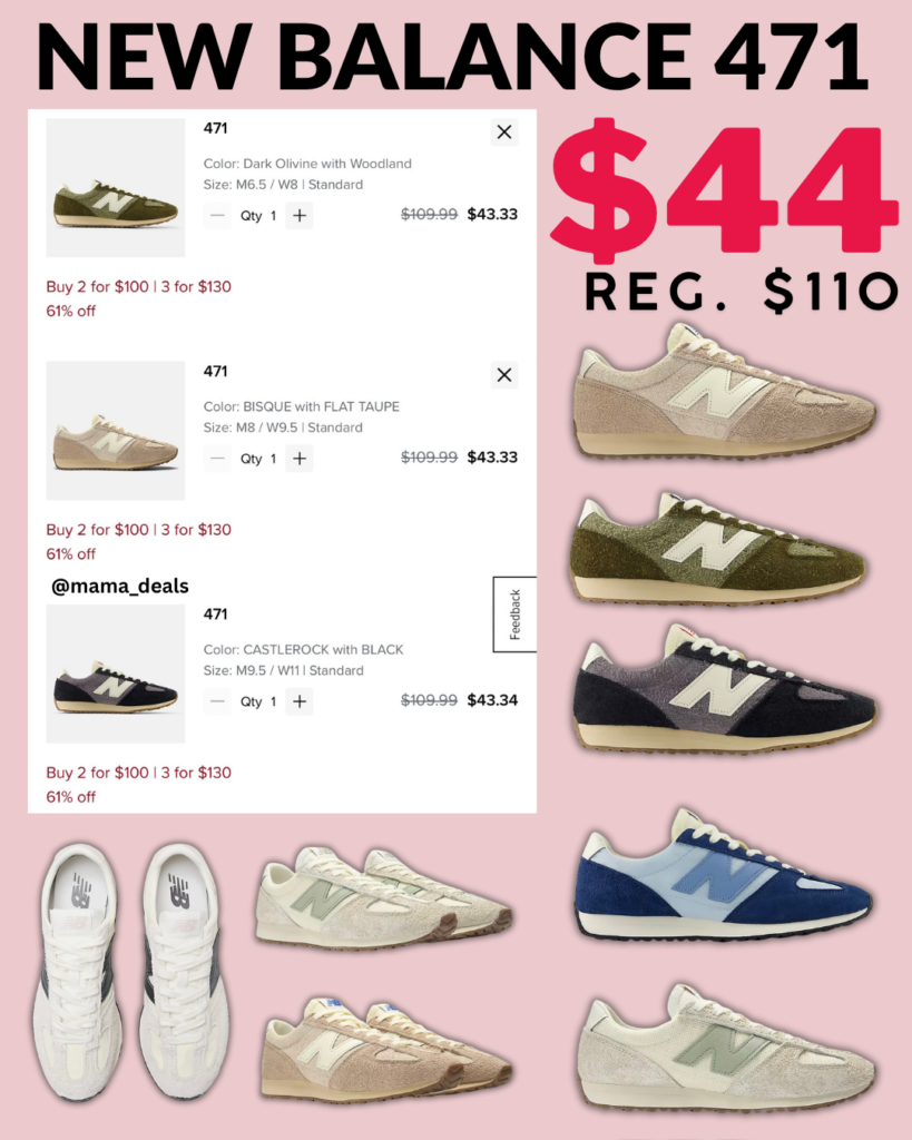 New Balance Sale. Buy 2 for $100 or buy 3 for $130. When you buy 3 for $130, each pair will be $44 each. Shop Here