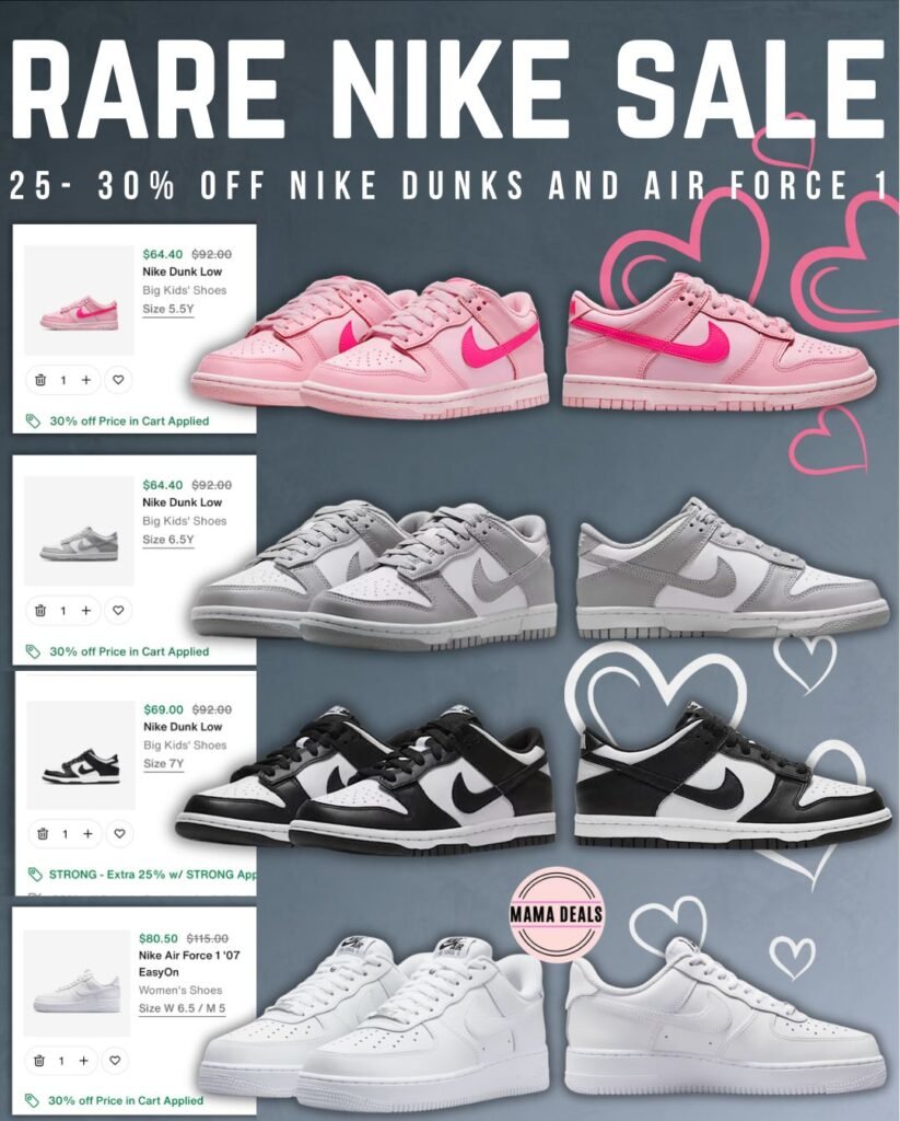Nike is running a limited-time sneaker sale with popular women’s and kids’ styles marked down when you add to cart. Shoppers can also save even more by using code STRONG when browsing the full sale. These are great everyday sneakers at reduced prices, perfect for school, casual wear, or gifting.