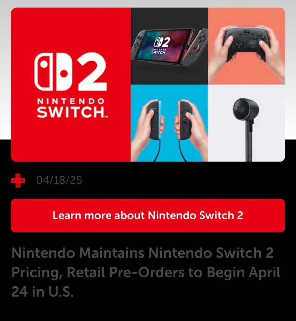 Nintendo Switch 2 preorders will begin on 4/24 and will remain the originally quoted price!