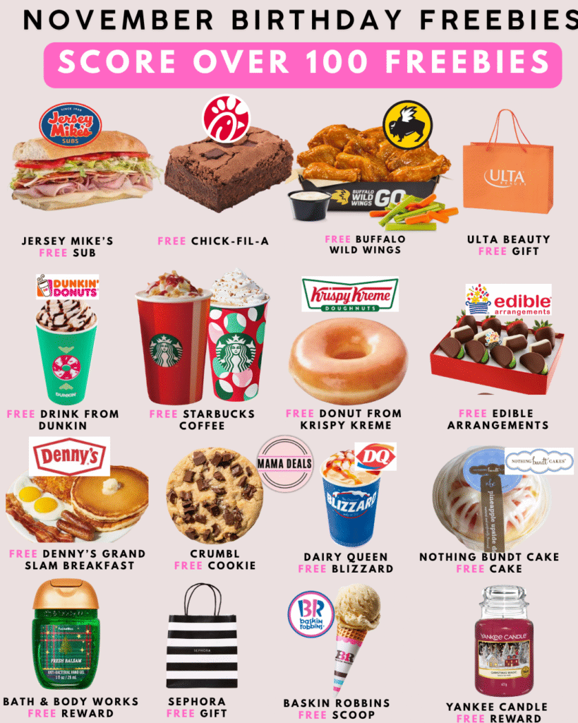 Starbucks – Free drink or food item on your birthday. Must join Starbucks Rewards and make at least one purchase in the past year.