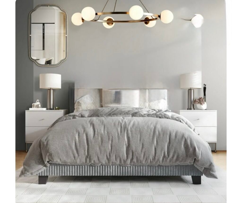 Only $81 Castle Place Chic Corduroy Velvet Upholstered Queen Bed, Navy Blue