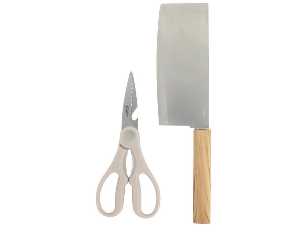 Upgrade your kitchen essentials for just $7.xx with the Oster Huntingfield 2 Piece Knife Set at Amazon. This affordable set includes a sturdy cleaver knife and versatile kitchen shears, designed with quality materials and stylish olive wood handles. It’s a great value for everyday cooking, meal prep, and food cutting tasks.