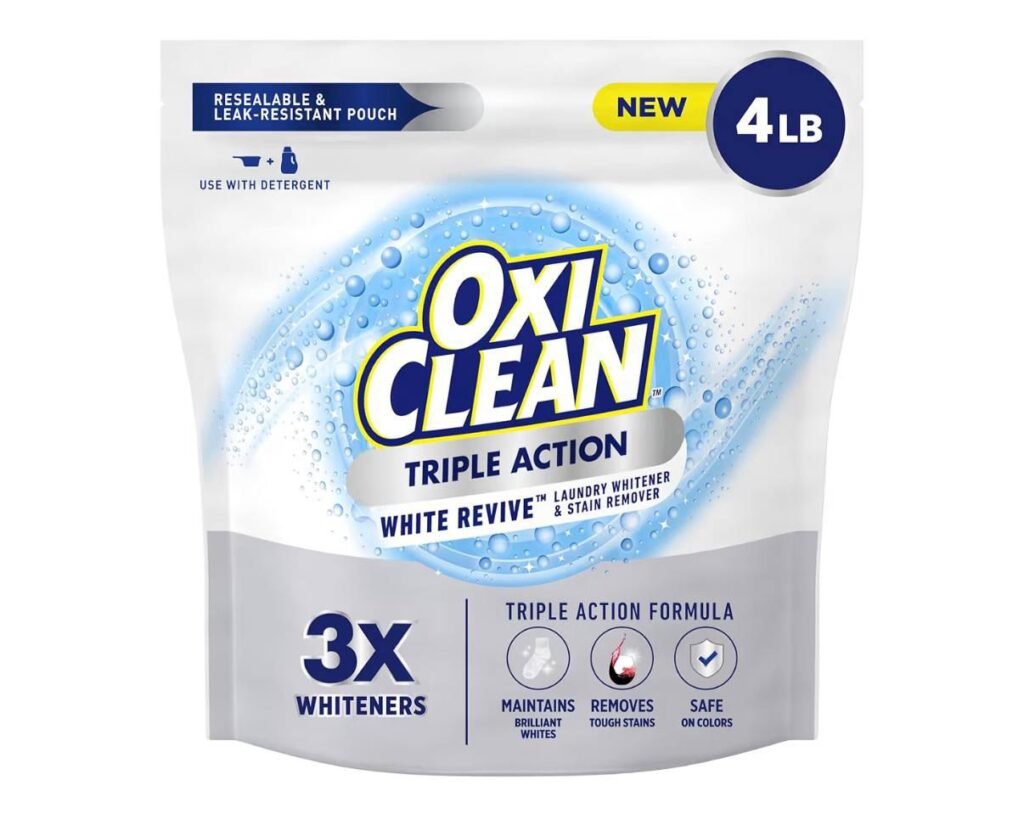 Refresh and brighten your laundry for less with OxiClean Triple Action White Revive, now as low as $12.xx at Amazon when you clip the coupon and use Subscribe and Save. Regularly priced around $17.xx, this powerful laundry booster helps restore whites, lift stubborn stains, and keep clothes looking like new without the use of chlorine.