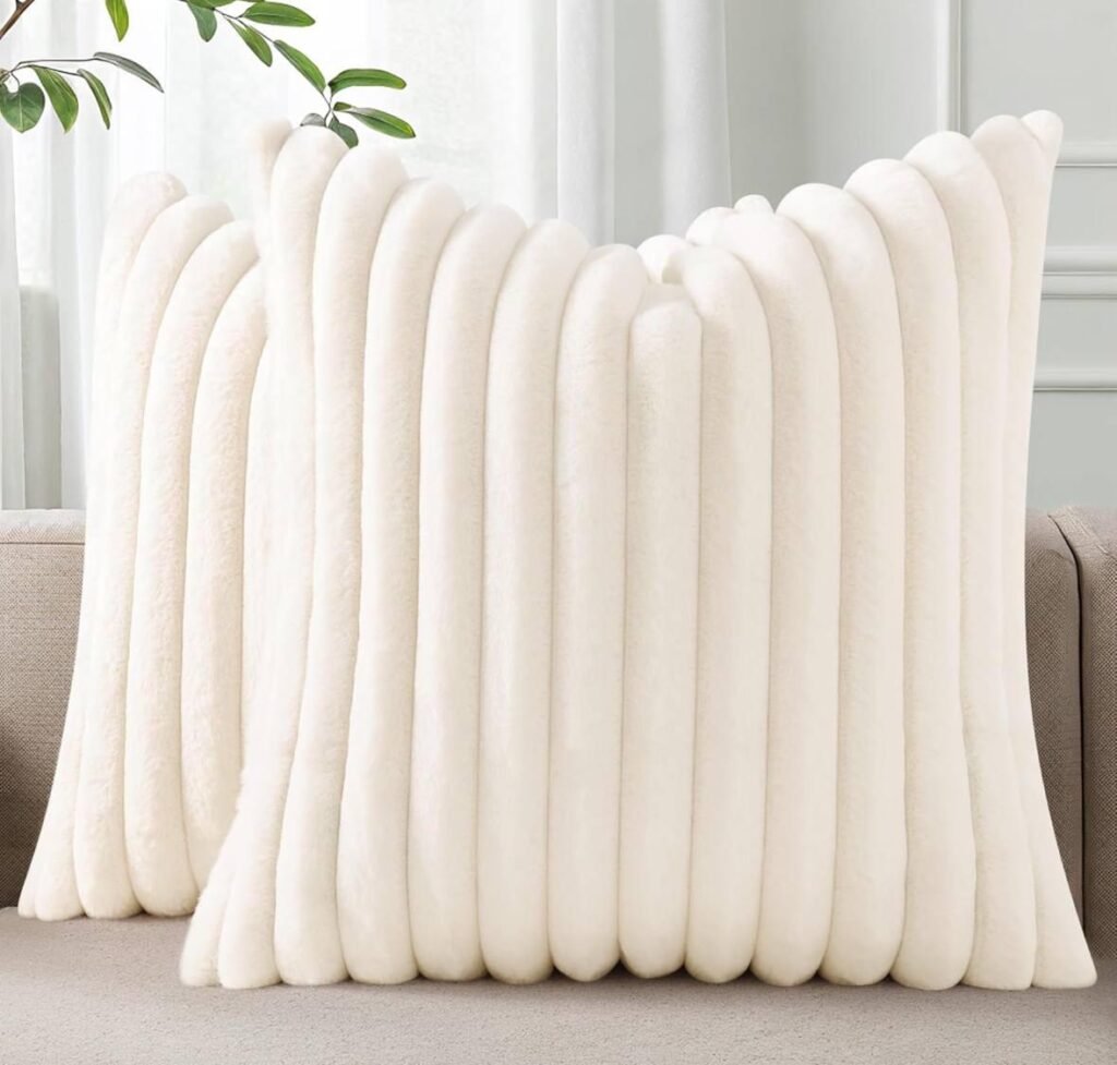 Refresh your living space with this set of two Pallene faux fur plush throw pillow covers. These luxury soft and fluffy striped covers add cozy texture and seasonal style to sofas, chairs, beds, or reading nooks. Their 18×18 size is a versatile choice for everyday décor and spring decorating updates, offering comfort and a chic look without the bulk.