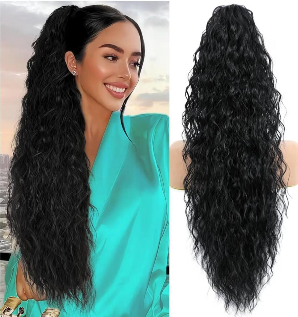 Transform your hairstyle instantly with this 28 inch Ponytail Extension, featuring a convenient claw clip for easy application. Designed for women who want long, wavy, or curly hair in a natural, fluffy look, this clip-in hairpiece adds volume and length without the commitment of permanent extensions. Available in black, it blends seamlessly for a polished and versatile style.