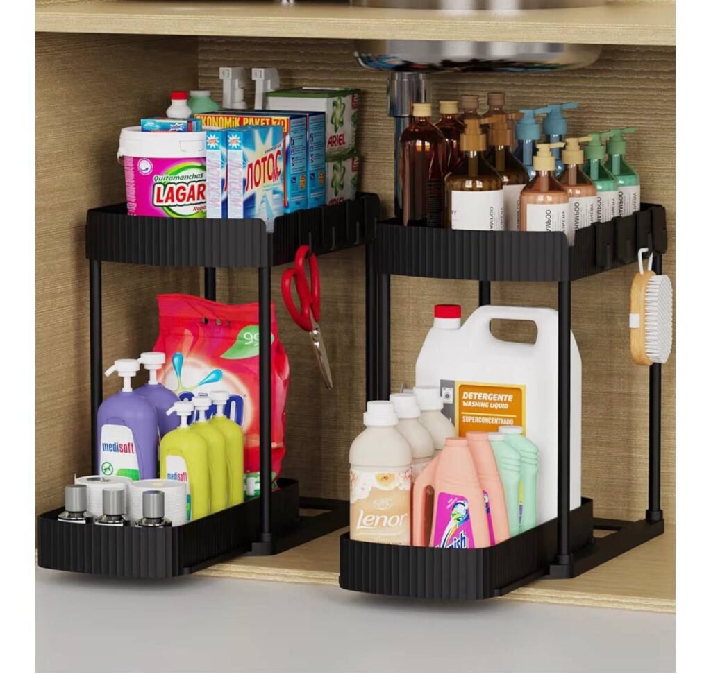 The Multi Purpose Pull Out Storage Organizers 2 Pack is currently available for $17.99 at Amazon, reduced from the regular price of $27.99. These versatile organizers are designed to maximize storage space in cabinets, under sinks, and bathroom areas while keeping everyday essentials neatly arranged and easy to access.